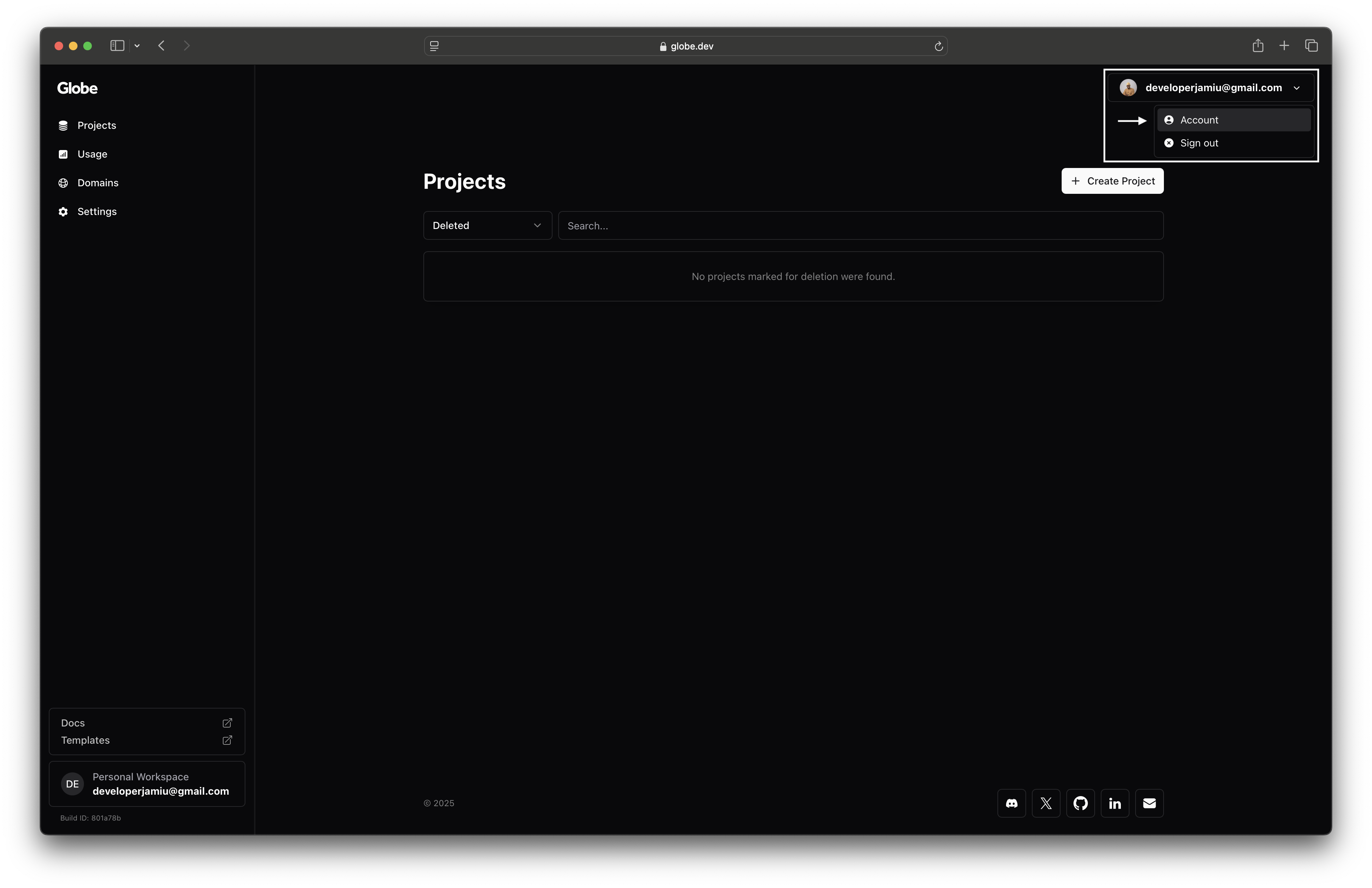 Connect your GitHub account to Globe to enable automatic deployments from your repositories with GitHub integration and event triggers.