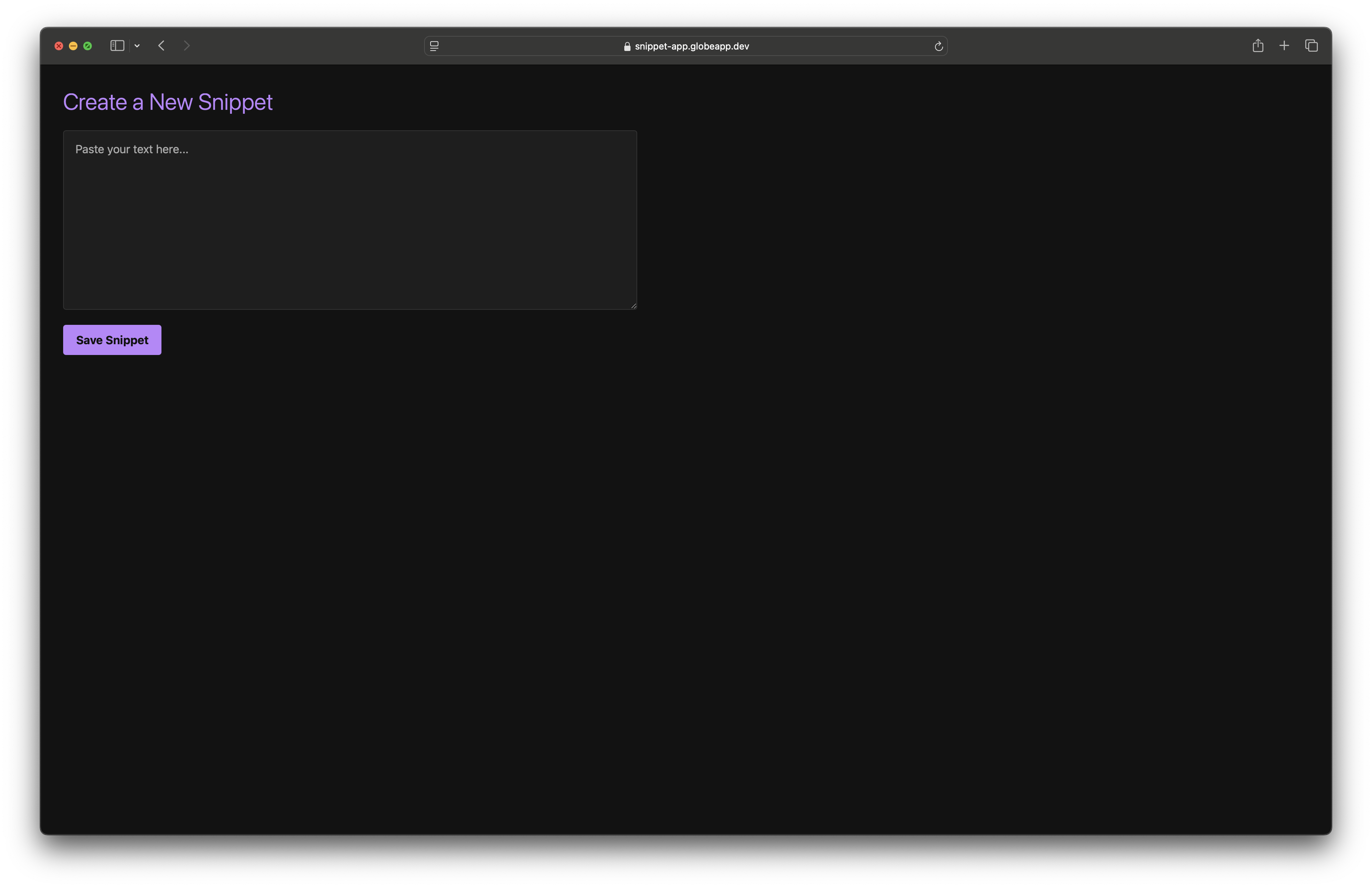 Visit your application's URL to see the form. When you save a snippet, you will be redirected to a /view/<id> page with a unique UUID in the URL.